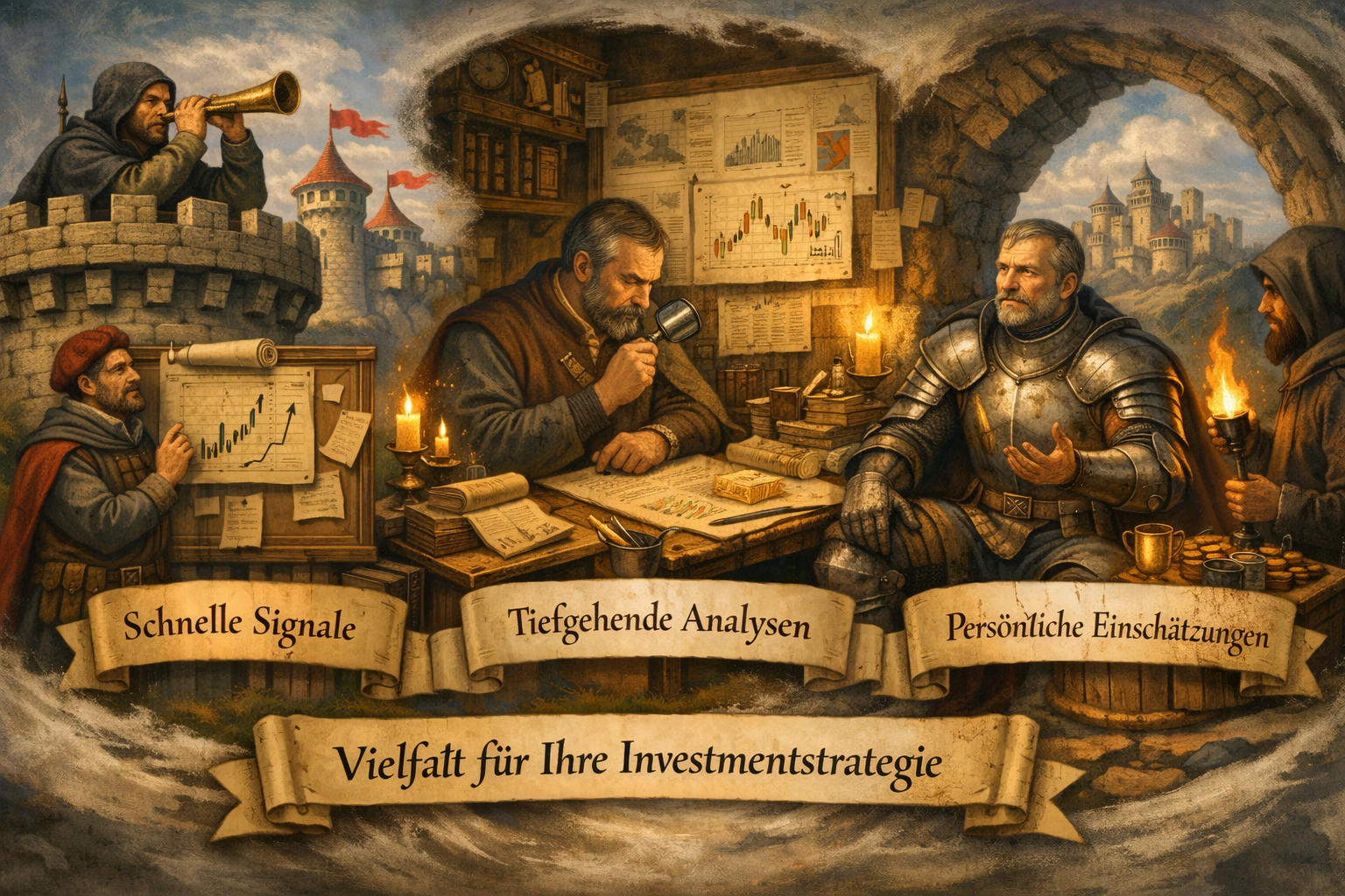 Ob schnelle Markt‑Signale, tiefgehende Analysen oder persönliche Einschätzungen – hier findest du die Botschaften, die dem Strategen dienen: kurze Meldungen wie Hornrufe vom Turm, ausführliche Berichte aus der Schreibstube der Ritter und weise Meinungen aus den Hallen der Erfahrung. Die Bauaufsicht wacht über Fundament und Statik, damit jede Entscheidung auf festem Grund ruht. So entsteht jene Vielfalt, die du brauchst, um deine Investment‑Strategie zu führen wie ein Feldherr seine Burg – mit Weitblick, Struktur und klarem Kompass.